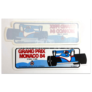 A pair of original vintage stickers (one is a window sticker) for the 1984 Monaco Grand Prix, which was won by Alain Prost for McLaren-TAG.