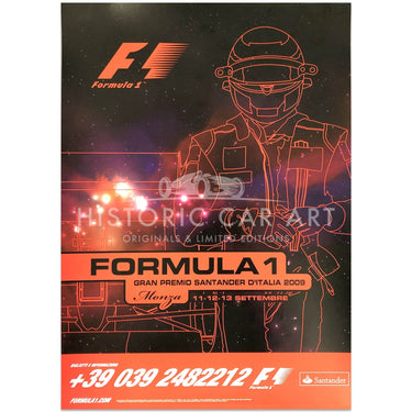 An original poster for the 2009 Italian Grand Prix. The race was won by Rubens Barrichello for Brawn-Mercedes.