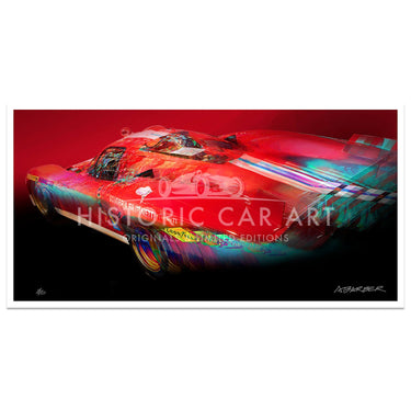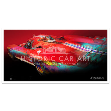 The 'Coda Lunga' low drag bodied Ferrari 512S. Available as a Giclee on paper, or high-resolution digital print on brushed aluminium in very small numbers.