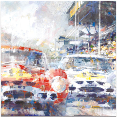 Always keen on cars and motor racing Dexter started doing studies whilst at Harrow Art College. Excellent use of colour and the technique of splitting the cars into shapes with strong lines is a characteristic of his art.