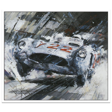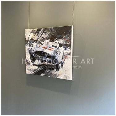 Having begun with photo-realism which Ketchell quickly found frustrating he moved towards his now recognisable impressionistic, semi-abstract style. “I was a fan of the French Impressionists, and thought it would be a good direction to capture speed.” Acrylics suited his new style and his bold captivating paintings were soon in demand: “Jim Clark was my hero and the 1960’s and 30’s are my favourite periods. The shape of the subjects is a key factor and the big sports-prototypes such as the 917, T70 and GT40 have always excited me. The balance of danger against speed of the silver arrows – particularly the Auto Unions – is also part of the appeal.”