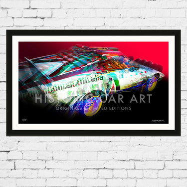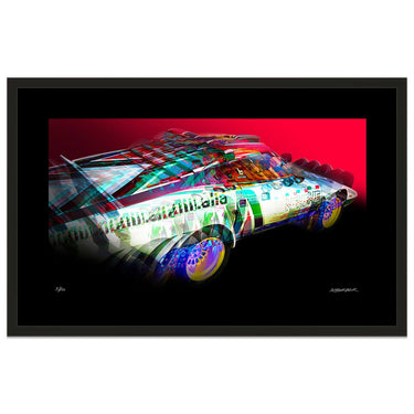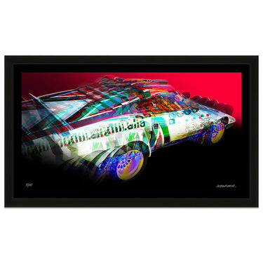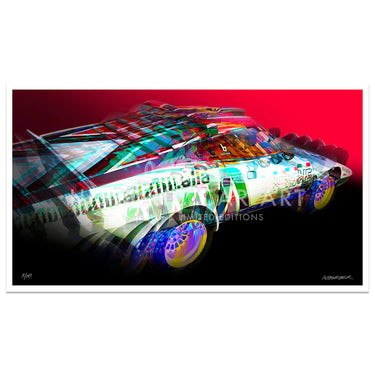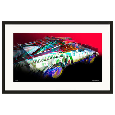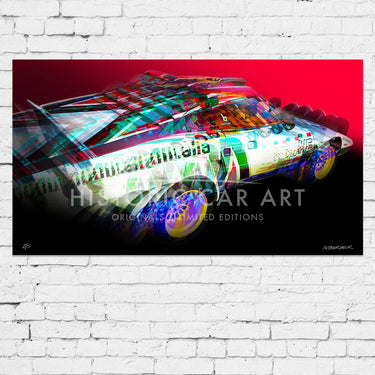 The Alitalia Lancia Stratos HF. The Stratos was a highly successful rally car winning the World Rally Championship in 1974, 1975 and 1976.