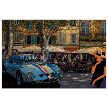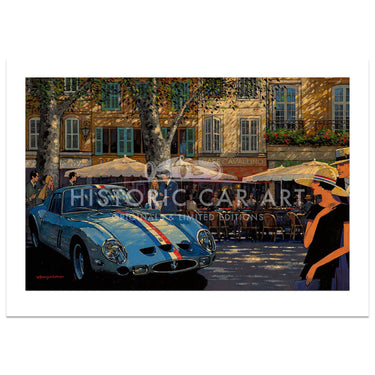 Limited Edition Print. A Ferrari 250 GTO stops for lunch in a beautiful town somewhere in Provence.