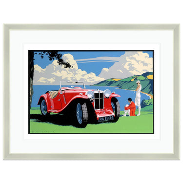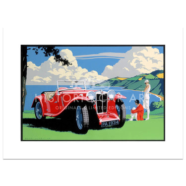 From that start, Brian’s interest has grown into all things of the 1920s-30s period, and of course automobiles, hence a return to one of his first loves. Brian works in two distinct styles, the art deco flat colour image, influenced by the posters and graphics of the 20s-30s period, and a more traditional painterly style, of acrylic on canvas. In either style he likes to capture the way the light shines and reflects on the surface of the vehicle, giving a very solid metallic feel, Brian thinks it is important try and sit the car in a setting appropriate to its era, and style.