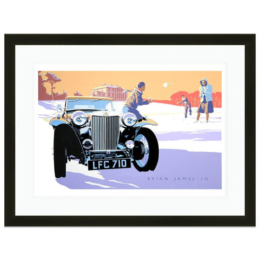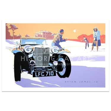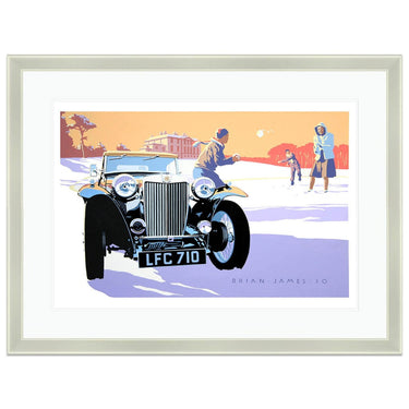 From that start, Brian’s interest has grown into all things of the 1920s-30s period, and of course automobiles, hence a return to one of his first loves. Brian works in two distinct styles, the art deco flat colour image, influenced by the posters and graphics of the 20s-30s period, and a more traditional painterly style, of acrylic on canvas. In either style he likes to capture the way the light shines and reflects on the surface of the vehicle, giving a very solid metallic feel, Brian thinks it is important try and sit the car in a setting appropriate to its era, and style.