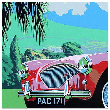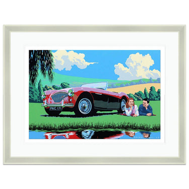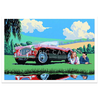 Limited Edition Print. A couple enjoy their 1954 Austin Healey 100.