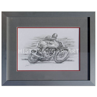 Original Drawing. Jimmy Guthrie on his Norton International wins the 1936 Isle of Man Senior TT.