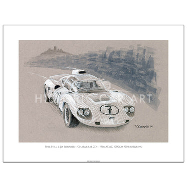 Limited Edition Print. Phil Hill and Jo Bonnier raced the Chaparral 2D to a win of the 1966 ADAC 1000km race at the Nürburgring.