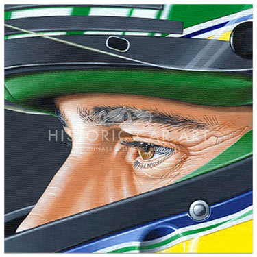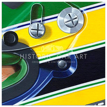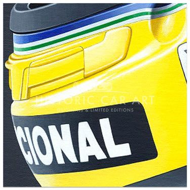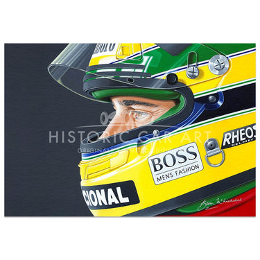 A stunning original painting by Kevin McNicholas of Ayrton Senna deep in thought.