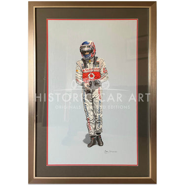 A stunning original painting by Kevin McNicholas of Jenson Button whilst he was driving for the McLaren Team.