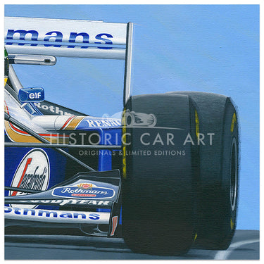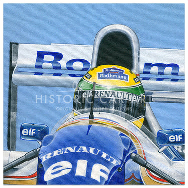 A stunning original painting by Kevin McNicholas of Ayrton Senna driving the Williams FW16. This was completed to celebrate the life of Ayrton who was tragically killed at Imola in 1994 during the San Marino Grand Prix.