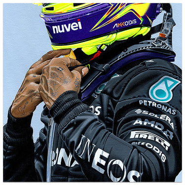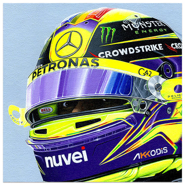 A fantastic original portrait painting by Kevin McNicholas of Lewis Hamilton.