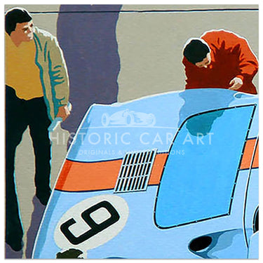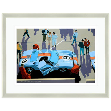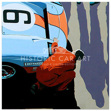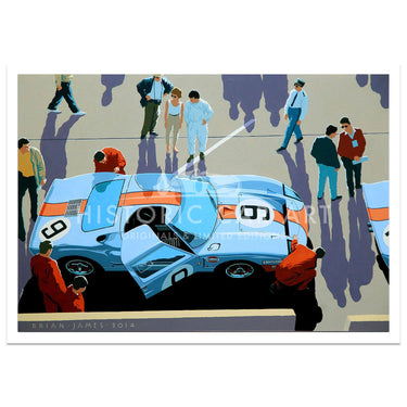 Limited edition print by Brian James of the 1968 Le Mans 24 hours race winning Ford GT40.