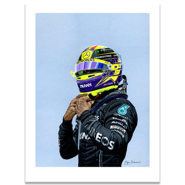 A fantastic limited edition print by Kevin McNicholas of Lewis Hamilton.