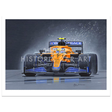 A fantastic limited edition print by Kevin McNicholas of Lando Norris driving the McLaren MCL135M at Spa.