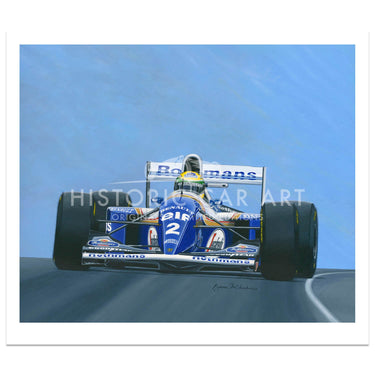 A fantastic limited edition print by Kevin McNicholas of Ayrton Senna driving the Williams FW16. This was completed to celebrate the life of Ayrton who was tragically killed at Imola in 1994 during the San Marino Grand Prix.
