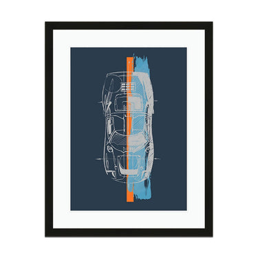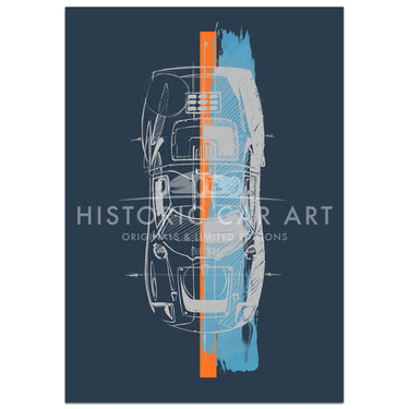 Limited Edition Print. A designers plan sketch of the Ford GT40 with a modern artistic twist.