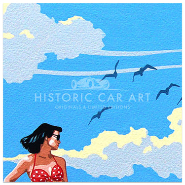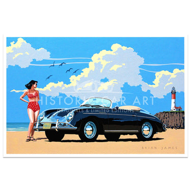 This limited edition print by Brian James features a 1956 Porsche 356 Speedster on the beach on a glorious summers day.