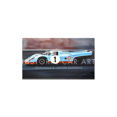A greetings card showing the Gulf Porsche 917 of Jo Siffert and Brian Redman - Daytona 24 hours 1970.