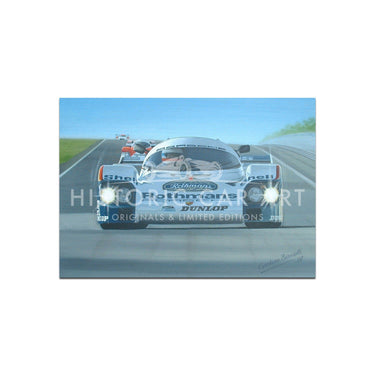 A greetings card showing the Porsche 956 of Derek Bell and Stefan Bellof - Silverstone 1000km 1983.