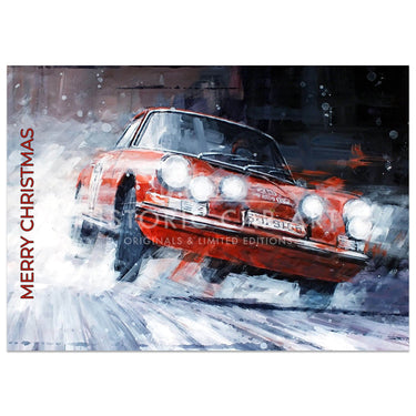 Christmas card featuring the 1968 Monte Carlo Rally and the Porsche 911T of Vic Elford and David Stone.