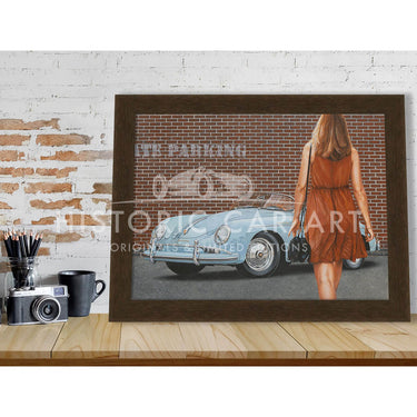 The iconic Porsche 356 Speedster is depicted in fabulous detail in this scene by photorealist artist S.Smyth. His delicate oils on canvas paintings are the result of many hours of painstaking, precise work with a variety of tiny brushes.