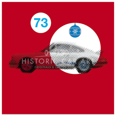 This striking Christmas card design shows one of the most legendary Porsche 911's - the 1973 2.7RS. Set against a festive Porsche Bahia Red background. By Studio 72 Design.