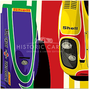 The artwork for each Studio Bilbey print is hand-drawn from scratch - including all the lettering and sponsors logo's, after extensive research into each cars race history and the graphics it carried. The result is the fresh, bold, clean-cut artwork you see here.