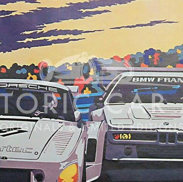 Original vintage poster for the Le Mans 24 hours 1980. Featuring the Porsche 935 and BMW M1 this is probably the best Le Mans poster artwork of the 1980's. French Artist Charles Pascarel is well known for his contemporary pop art style. This poster would hold it's own in any art collection.