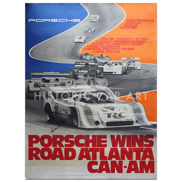 Original vintage poster for the Porsche Atlanta Can-Am 1973 victory (George Follmer signed)