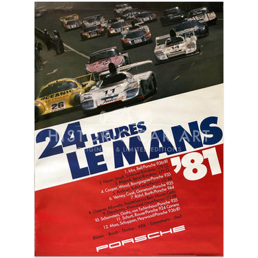 An original Porsche factory victory poster for the 1981 Le Mans. Won by Bell/Ickx in the Porsche 936.