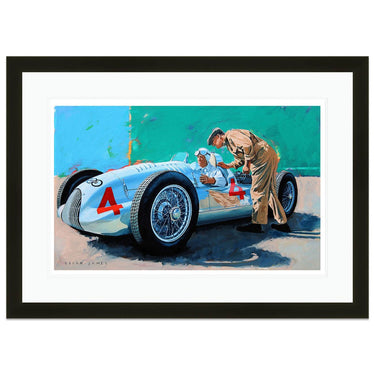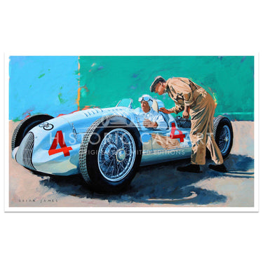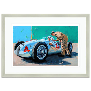 This limited edition print by Brian James features a 1938 Auto Union Type D in a pit lane.