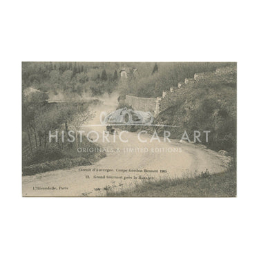 A vintage postcard from 1905 showing the Circuit d'Auvergne tournant pres la bahque (turning near the bahque).