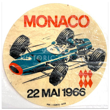 Original vintage transfer sticker for the Monaco Grand Prix 1966. The race was won by Jackie Stewart for BRM.
