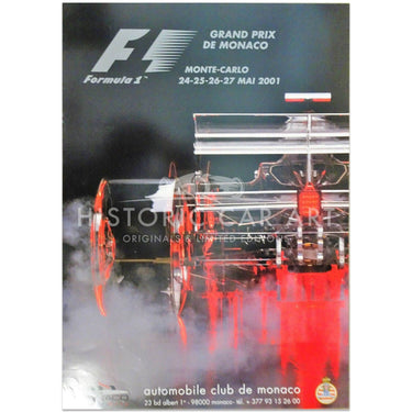 An original poster for the 2001 Monaco Grand Prix. The race was won by Michael Schumacher for Ferrari.