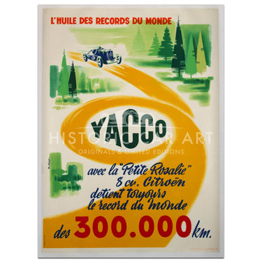 Original vintage poster for the Citroen 8cv Speed Record in 1956 sponsored by Yacco Oil.
