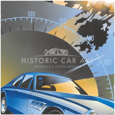 Emilio Saluzzi is regarded as one of the most innovative living automobile artists. His dramatic works are reminiscent of the Italian Futurist movement, led by Giacomo Balla (1871-1958) almost a century ago, which paved the way for a generation of Art Deco illustrators. His geometric angular style, coupled with skilful use of airbrush and ‘splatter’, endow his poster artworks with a memorable flourish.