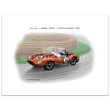 Limited Edition Print. Phil Hill winning the 1958 Le Mans driving his Ferrari 250 TR58.
