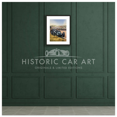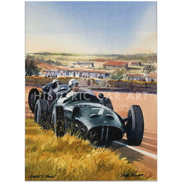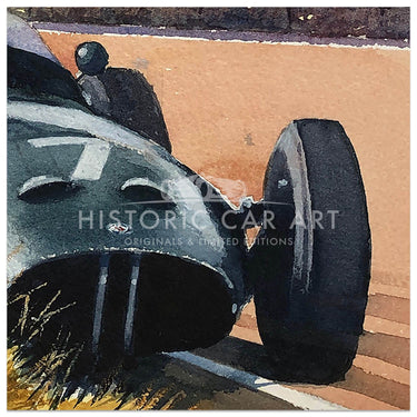 Original Painting of Jo Bonnier, who  was the first Swedish driver to start a Grand Prix race. His greatest achievement in Formula One was taking victory for BRM in the 1959 Dutch Grand Prix at Zandvoort, shown in this painting.