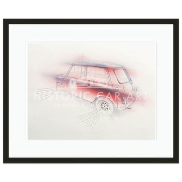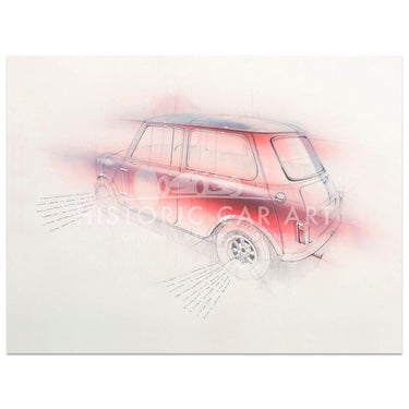 REVS ART original mixed media artwork of the Mini Cooper S. Raced and rallied very sucessfully in the 1960's, including an outright win at the 1964 Monte Carlo Rally in the hands of Paddy Hopkirk.