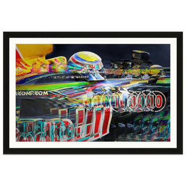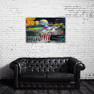 In his striking, dynamic impressionistic art prints Barber strives to convey the motion of the racing car on the senses. Both visual and aural.