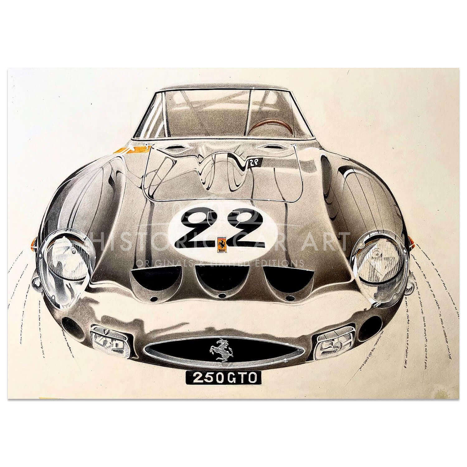 REVS ART original artwork of the 1962 Ferrari GTO.