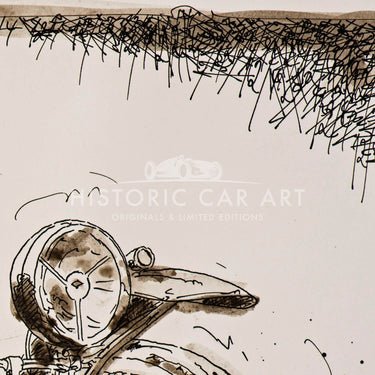 More recently he got into drawing motor racing scenes which offers him a real huge field of creativity. Visualizing speed and fast movement goes hand in hand with his drawing style.