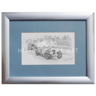 Original artwork of the 1935 Ulster TT featuring Freddie Dixon in his Riley. Pencil Sketch by Graham Bosworth.