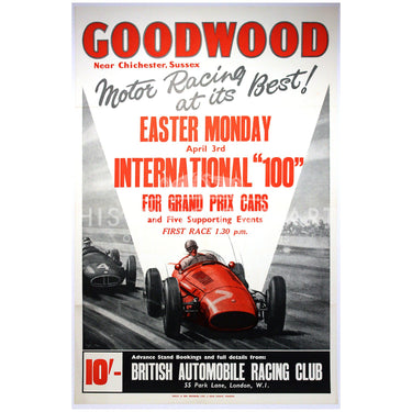 Original vintage poster for the 1961 Goodwood Easter race meeting on 3rd April. Attractive artwork by Roy Nockolds featuring Maserati (the same artwork used by Goodwood from 1957 onwards).