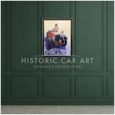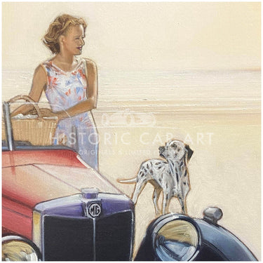 First on the Beach | 1932 MG Midget with Dalmatian | Artwork