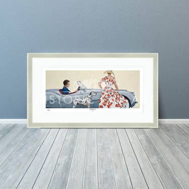 Limited Edition Print. Three will be a crowd in his Jaguar XK 120.