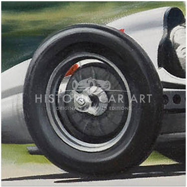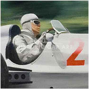 Artist Graham Bosworth grew up in Coventry, the heart of the British motor industry. It was no surprise that his childhood passion for motorsport would later become a favourite subject as he progressed through a professional career as a freelance artist and technical illustrator. “I remember the sight and sound of C and D type Jaguars being driven around the roads near my home”. Early visits to Silverstone also left a lasting impression.