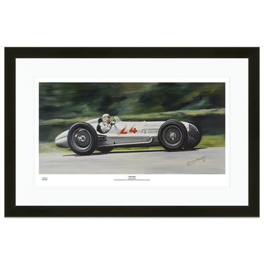 Limited Edition Print. Rudolf Caracciola drives his Mercedes W154 to 2nd place in the 1938 French Grand Prix, Reims.
