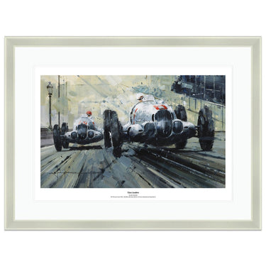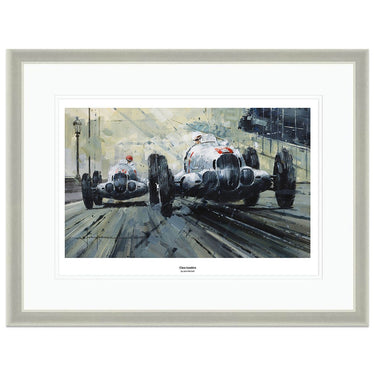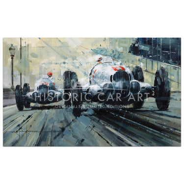 Limited Edition Print. 1937 Monaco Grand Prix - Caracciola / Von Brauchitsch driving the Mercedes W125's. Caracciola started on pole, but Von Brauchitsch won the race.